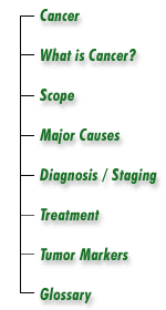Abnormal mass (neoplasm) of benign or malignant cells that