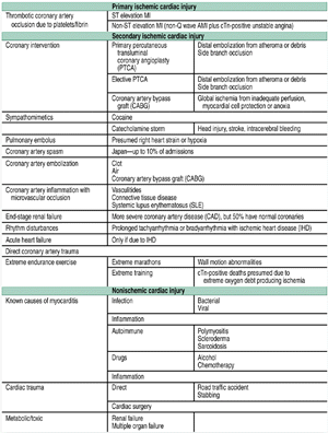 into three categories. In primary ischemic cardiac injury (PICI), cTn