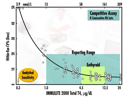 2 SD for competitive assays like T4. Technical Services can assist in