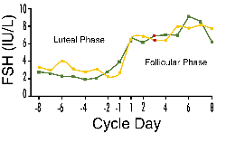 and estradiol levels. Hormonal levels at or around the luteal-follicular