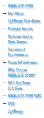Built around the many positive attributes of the IMMULITE 2000, the IMMULITE 2500 includes the very important addition of Logic Driven Incubation (LDITM). Using a newly designed incubator, LDI technology allows assays to be formatted for optimal performance with the fastest possible incubation time. This means certain assays, such as DPC's cardiac biomarkers and HCG, can now be run in 15 minutes. The IMMULITE 2500 was developed on the basis of customer feedback and market trends as a highly productive and efficient system for medium- and high-volume routine immunoassay laboratories, with a throughput of up to 200 tests per hour. With the addition of the IMMULITE 2500 SMS to our complete line of immunoassay analyzers and automation products, DPC is now able to offer optimal solutions to every type of customer.